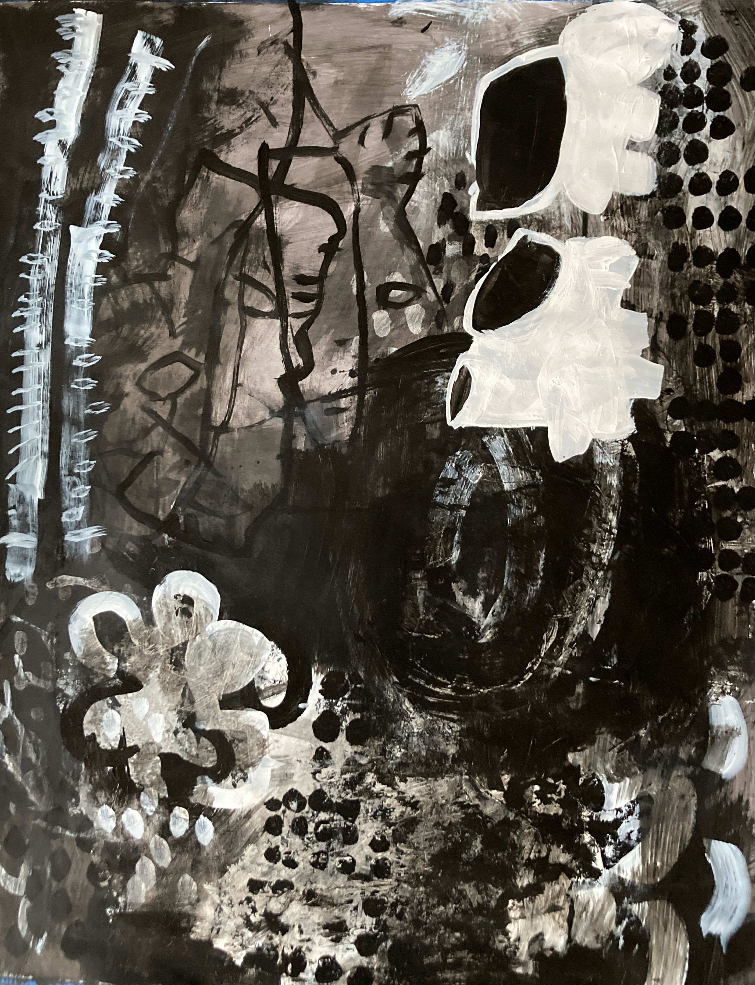 Lately I seem to be veering towards dark thinking. Taxonomy of Lost Form was born from the idea of a a world where an apocalyptical future is confronted with incomprehensible, lost information systems and a planet populated with new unnamed plant species. But, as is usually the case, the work became more about painting than this imposed narrative. Discovering new ideas about color, new ways to use tools, and new ways of creating space on a flat surface drove the process. As the paintings progressed I felt myself losing the initial thread of doom and began to work with a lighter approach. My hope is that the viewer can share in my vision of an ominously dark future vision, as well as it’s flip side – of a future with exciting and untold possibilities.”